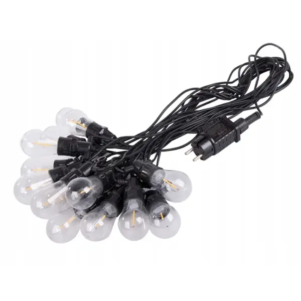 Ghirlanda luminoasa, 15 becuri, lungime totala 15 m, clasa impermeabilitate IP44, lungime intre becuri 1m, Gonga® Negru