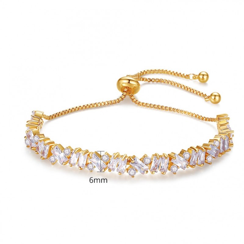 Alege această brățară elegantă, placată cu aur de 14K, cu zirconii strălucitoare și design ajustabil, Naiara®, pentru un accesoriu deosebit care va adăuga un strop de strălucire și eleganță oricărei ținute!