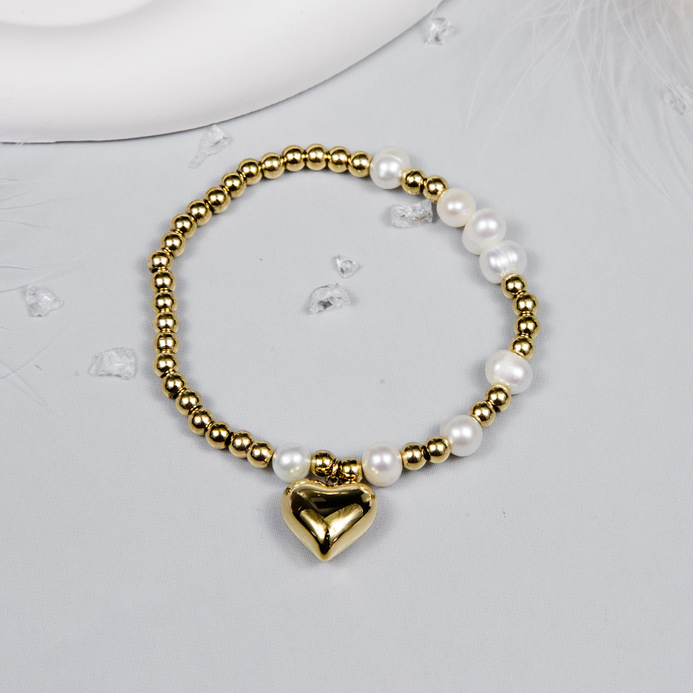 🔸 Design elegant cu perlute și pandantiv inimioară – Brățara este decorată cu perlute delicate și un pandantiv în formă de inimă, oferind un look rafinat și romantic, perfect pentru a completa orice ținută.