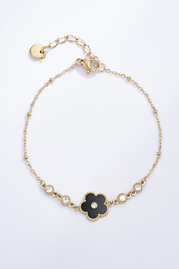🔸 Design deosebit cu floare neagră și pietricele – Brățara este decorată cu pietricele delicate și un pandantiv în formă de floare neagră, care adaugă un contrast elegant și un efect vizual rafinat.