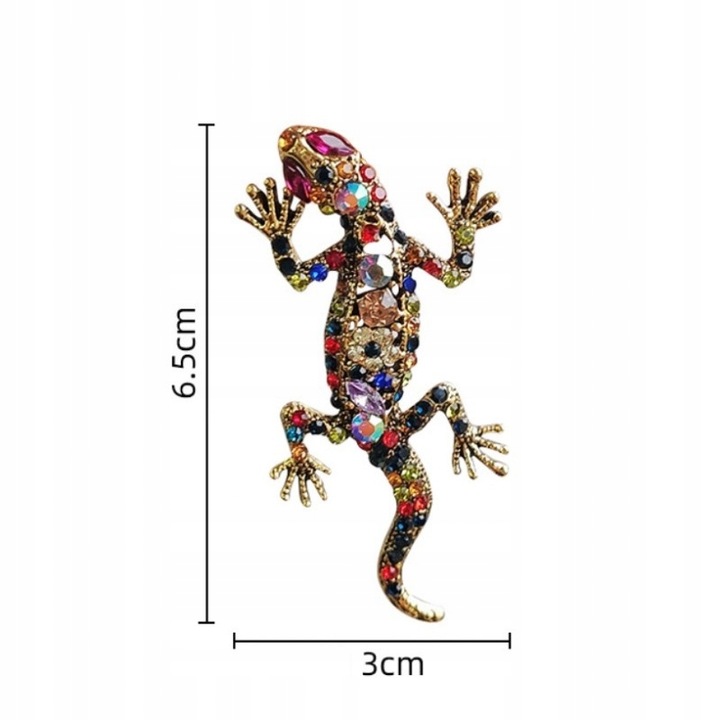 🔸 Design cameleon cu cristale colorate – Broșa are un design original în formă de cameleon, decorat cu cristale colorate care adaugă un plus de strălucire și dinamism, creând un look jucăuș și elegant în același timp.