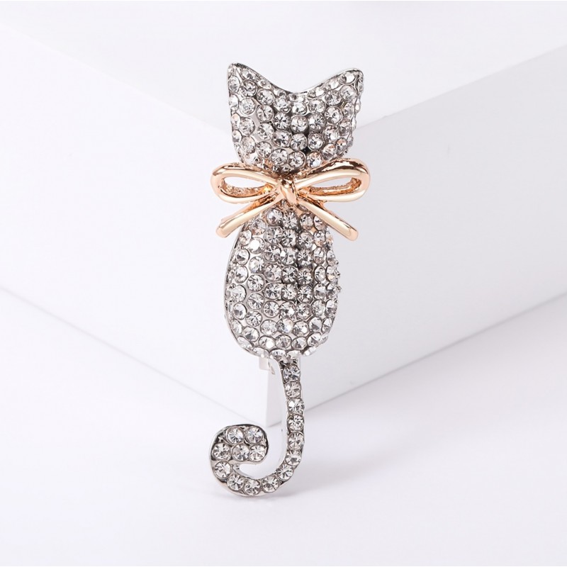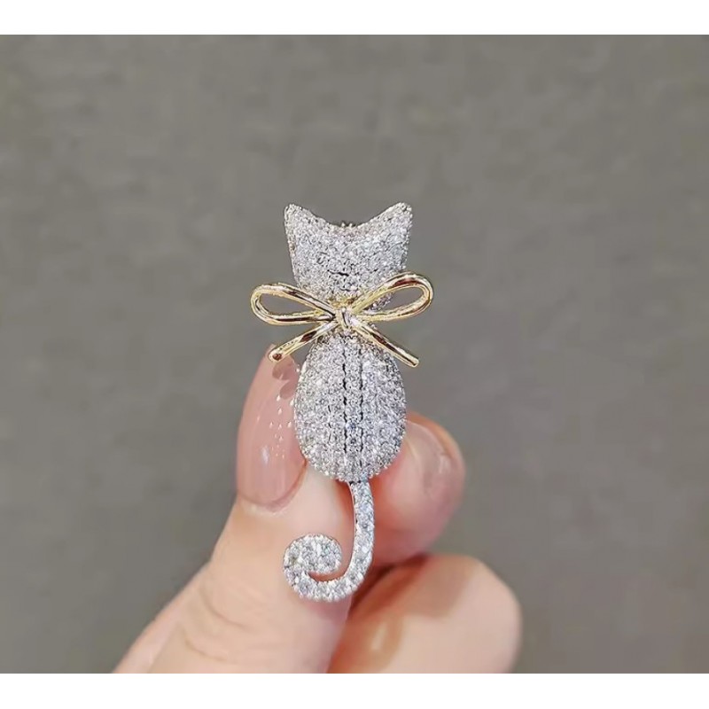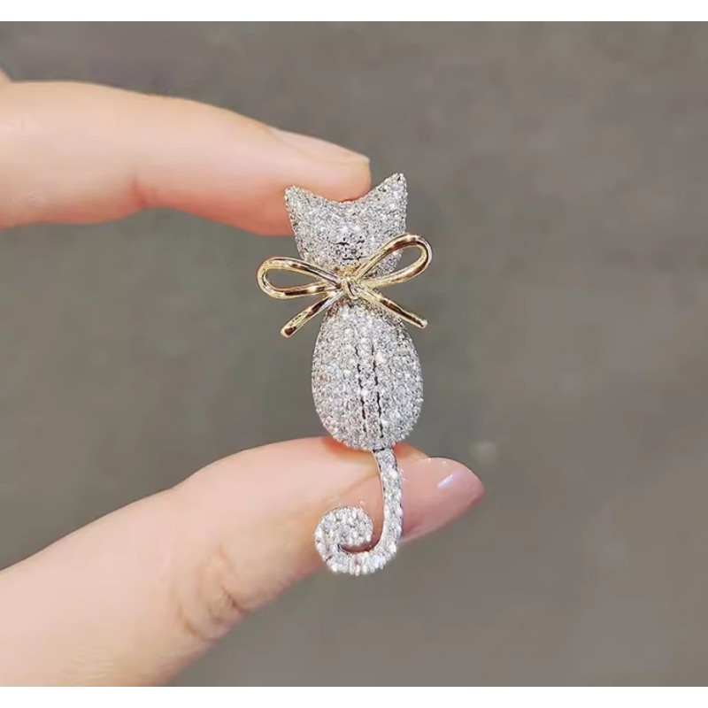 🔸 Design elegant cu cristale în formă de pisică – Broșa are un design deosebit, în formă de pisică, decorată cu cristale fine care adaugă un plus de strălucire și un aer jucăuș, dar sofisticat.