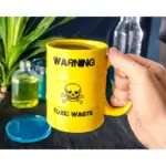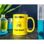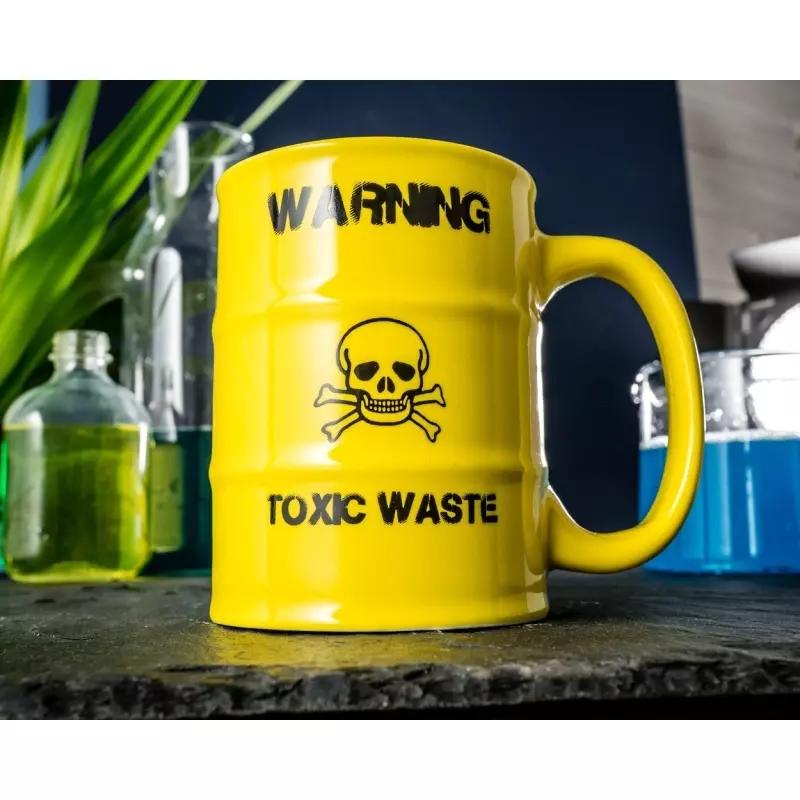Cine îndrăznește să bea dintr-o cană în formă de butoi cu mesaj WARNING TOXIC WASTE și imaginea craniului? Depinde de tine ce torni in cana ta galbena, dar trebuie sa stii ca oamenii care te privesc pot simti un fior de teama.