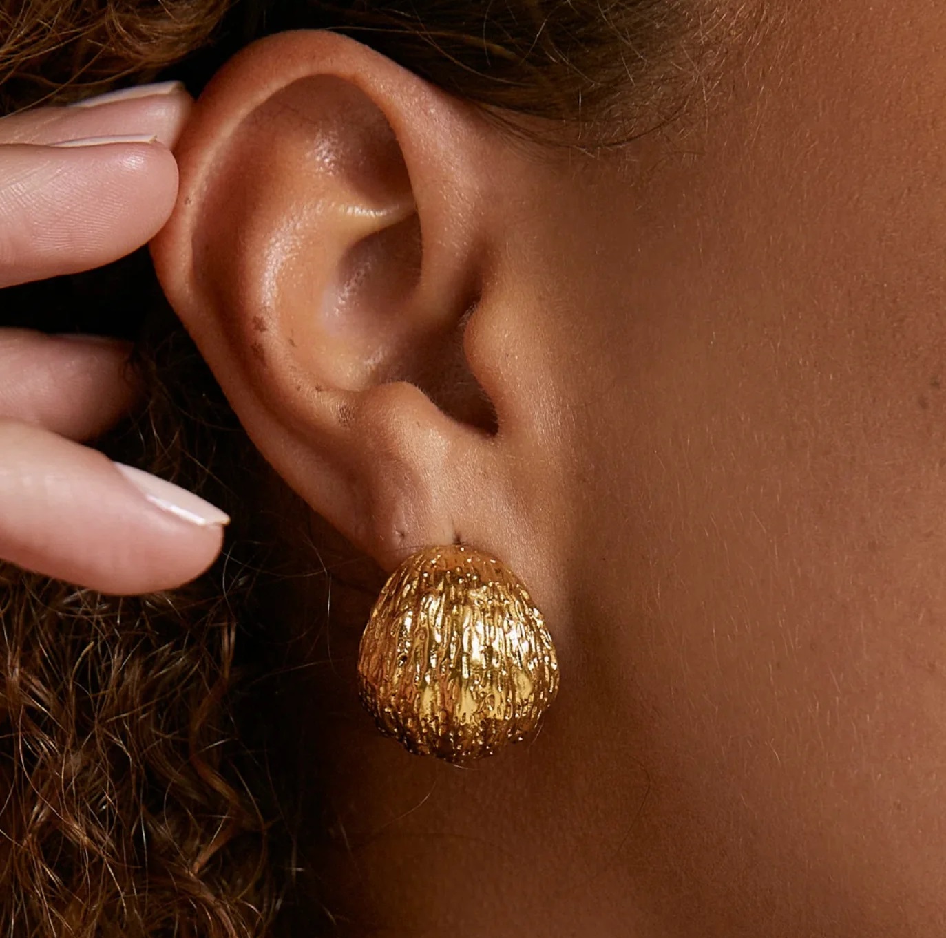 Alege cerceii aurii cu textură reliefată Naiara® pentru un look distinctiv și elegant, care adaugă un plus de rafinament și originalitate oricărei ținute!