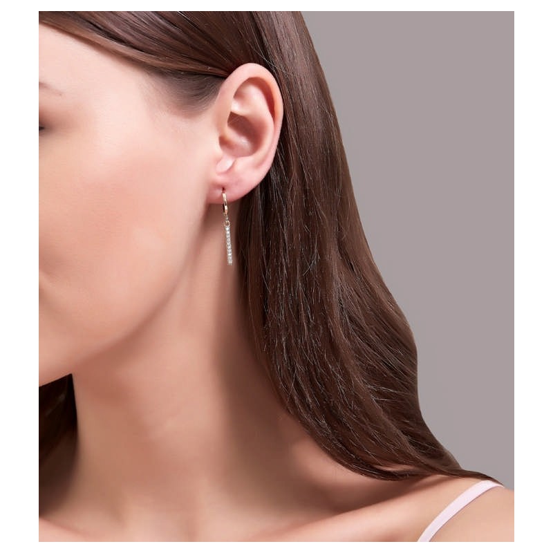 Adaugă un strop de rafinament și eleganță colecției tale cu acești cercei lungi aurii cu cristale, marca Naiara®. Designul lor sofisticat și sistemul de închidere englezesc îți vor oferi un look elegant și strălucitor, perfect pentru orice ocazie.