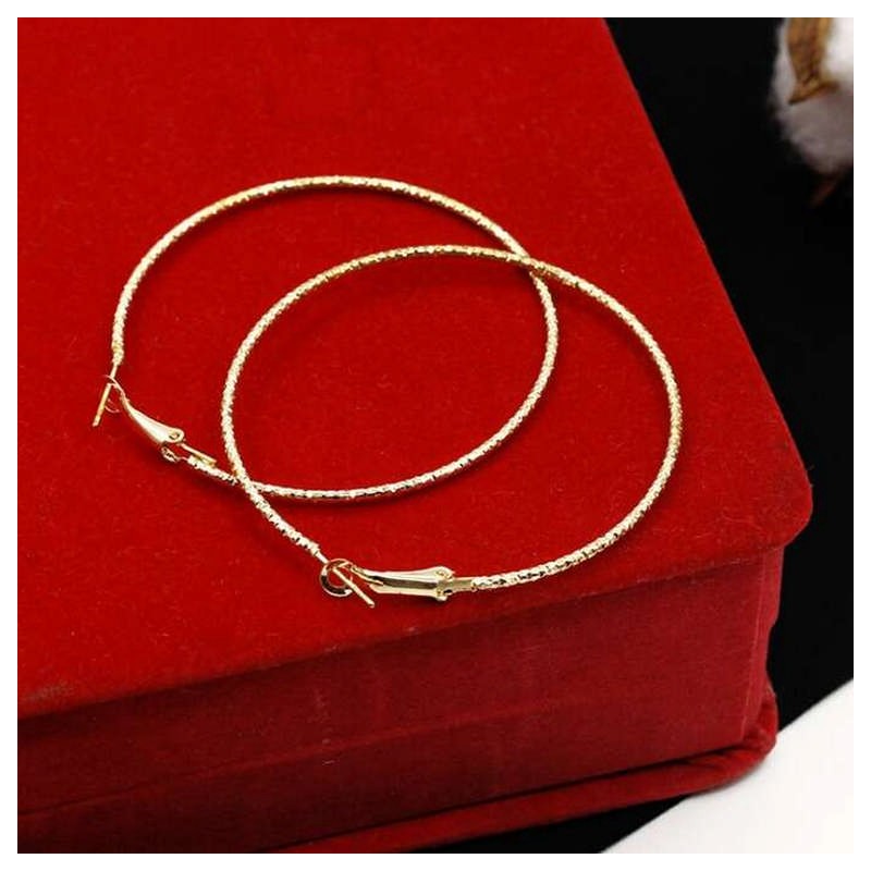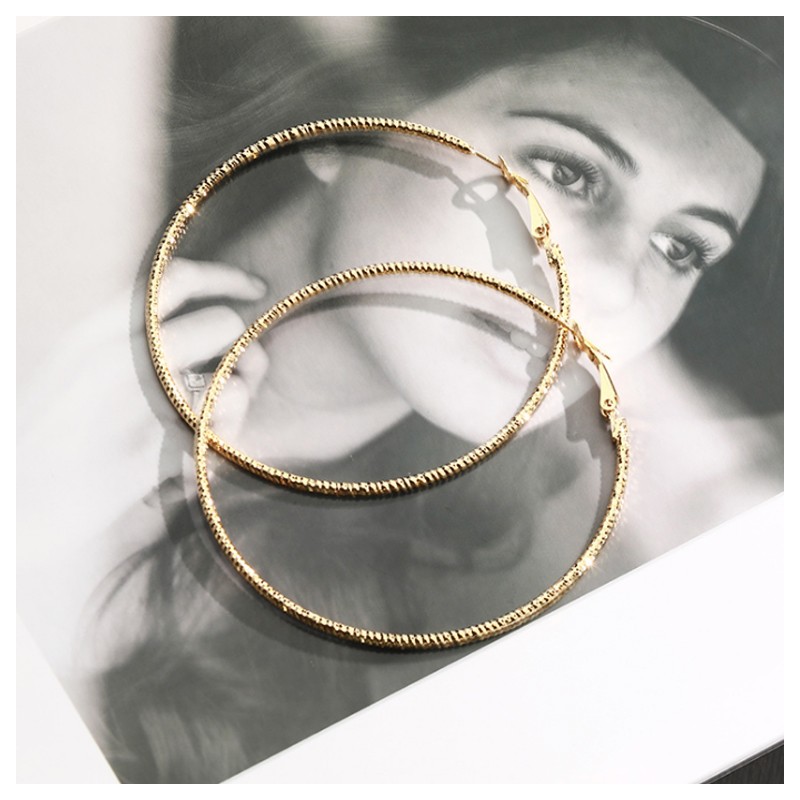 Cercei lungi aurii, tip hoop, model texturat, diametru 5.8 cm, Naiara®