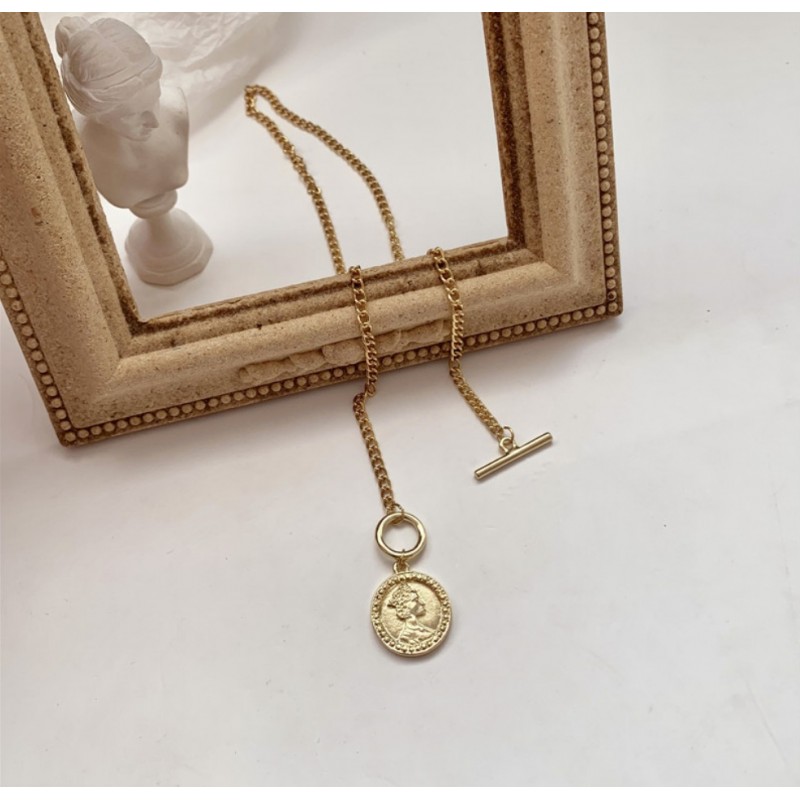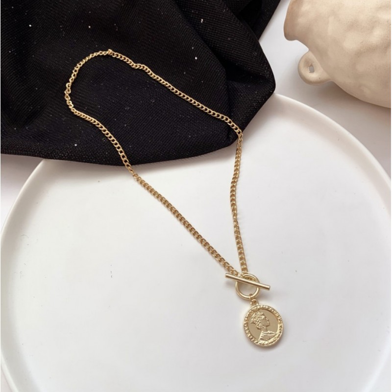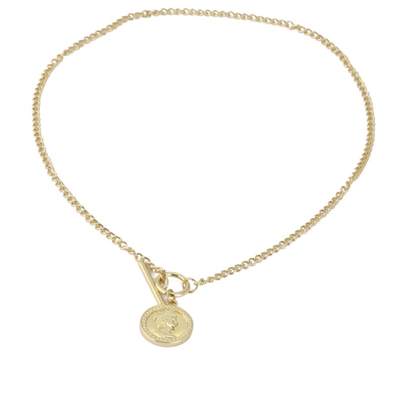 Adaugă o notă de eleganță atemporală ținutelor tale cu acest colier auriu cu pandantiv monedă vintage, marca Naiara®. Cu un design clasic și sofisticat, acest accesoriu redefinește stilul rafinat printr-un detaliu subtil, dar de impact.