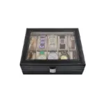 Prezinta 10 compartimente in care puteti depozita ceasuri sau bratari.