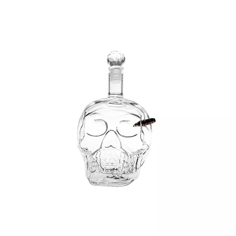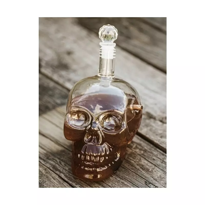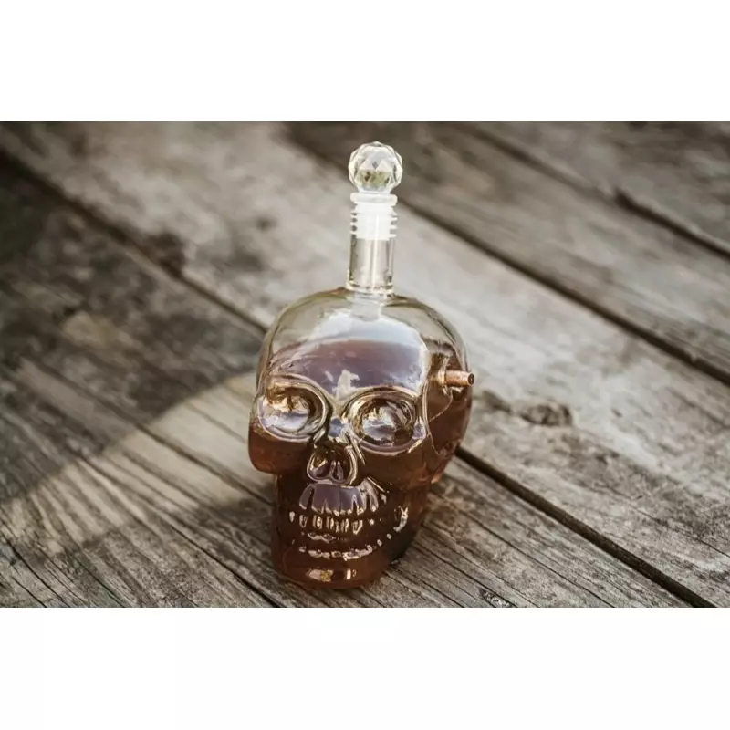 Decantor din sticla in forma de craniu, perfect pentru petreceri.