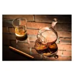 Decantor din sticla in forma de craniu, perfect pentru petreceri.