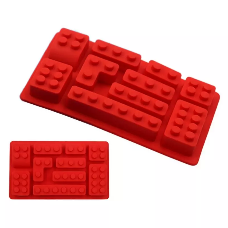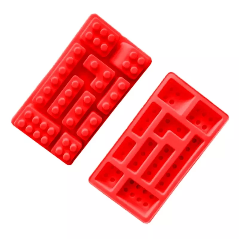 O matriță de copt din silicon în formă de cărămizi LEGO.