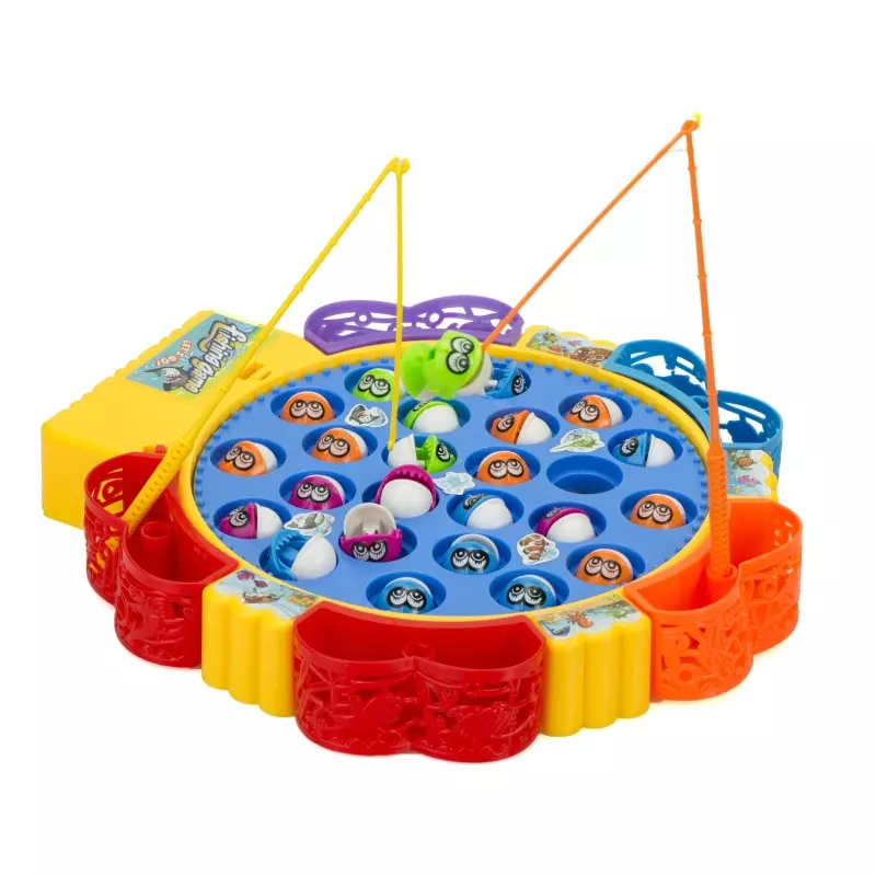 Joc interactiv Prinde Pestele, ce poate fi jucat in 5 jucatori. Puneti toti pesti pe baza, in locurile speciale apoi luati fiecare jucator cate o undita de pescuit. Castigatorul este cel care prinde cat mai multi pesti.
