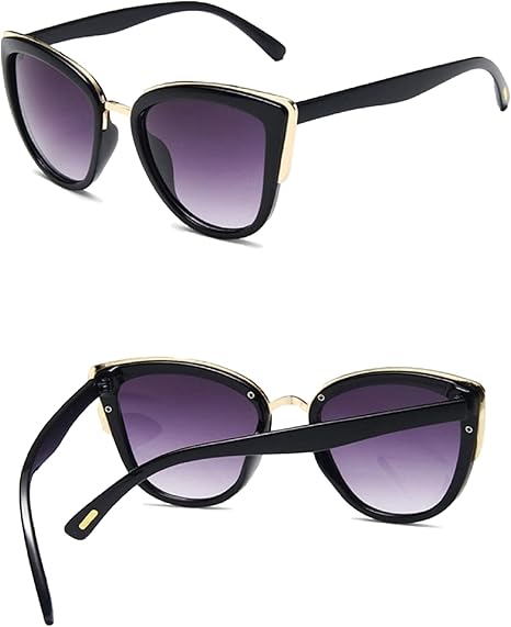 🔸 Design cat-eye cu rame negre – Forma clasică și feminină flatează trăsăturile și adaugă o notă retro-chic oricărei ținute.