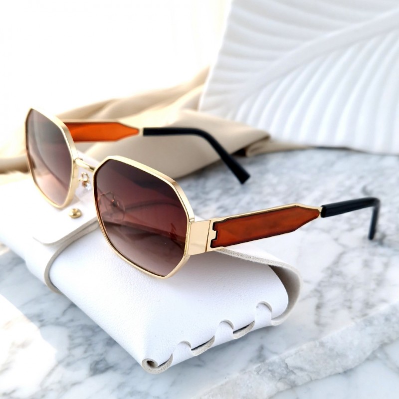🔸 Ramă metalică aurie – Ramele fine din metal aurit adaugă un aer de eleganță și rafinament, completând perfect orice ținută.
