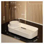 Dimensiunile sale generoase de 33,5 x 28 x 14 cm îl fac perfect pentru depozitarea pensulelor, cosmeticelor și altor accesorii de frumusețe. Suportul pentru pensule are un recipient rotativ care se rotește la 360 de grade, oferind o utilizare comodă și rapidă. În plus, textura specială de silicon a compartimentului pentru pensule permite o spălare ușoară a periilor sub dom, protejându-le în același timp.