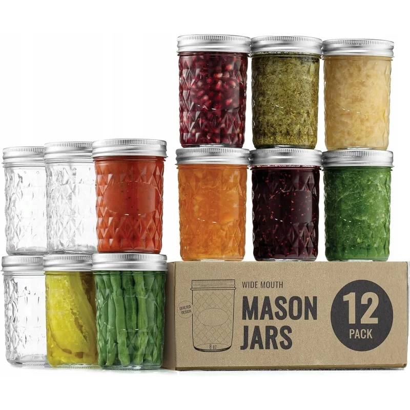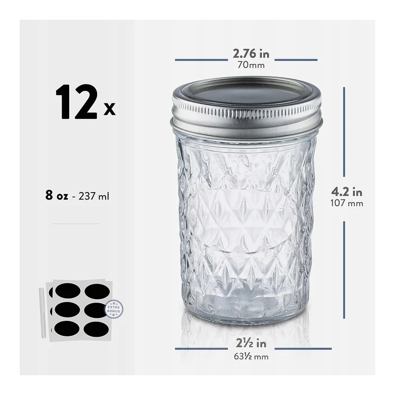 Set 12 borcane de 235 ml cu filet, pentru gemuri, condimente, compoturi, cafea