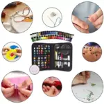Un set complet de cusut cu pana la 129 de articole. Un cadou perfect pentru pasionatii de croitorie. Toate accesoriile sunt realizate din materiale solide si se potrivesc perfect in mana, ceea ce le face potrivite si pentru profesionisti. Intr-o carcasa practica cu fermoar exista loc pentru o serie de accesorii (ace, fire, ace de siguranta, foarfece, banda de masurat etc.).