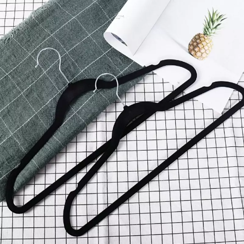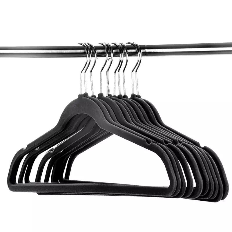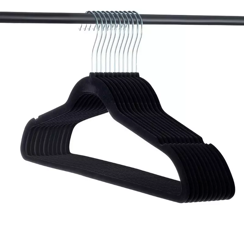 Acoperirea din catifea previne alunecarea, in timp ce carligul cromat poate fi rotit in orice unghi. Baza larga permite agatarea confortabila a pantalonilor, iar decupajele suplimentare din partea superioara faciliteaza agatarea bluzelor cu bretele.