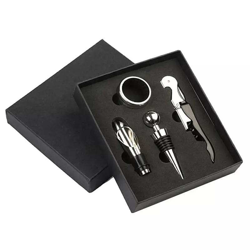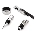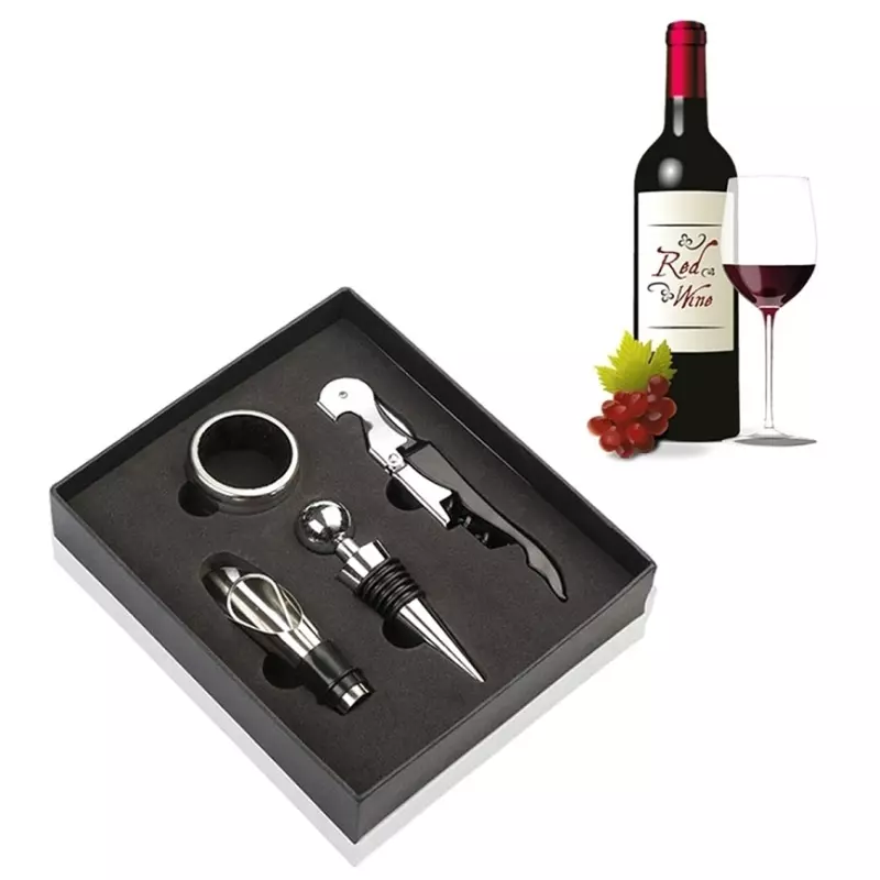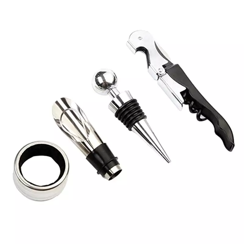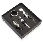 – Un set cu toate cele mai des folosite accesorii pentru vin – utile in fiecare casa.