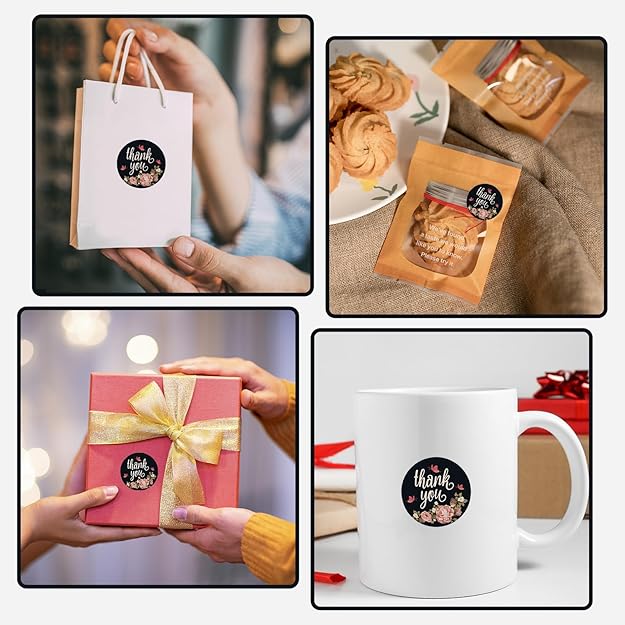 Oferă un plus de eleganță fiecărui ambalaj cu setul de 500 etichete autocolante Noem®, cu fundal negru și mesaj Thank You în scris caligrafic. Perfecte pentru ambalaje handmade, cadouri, plicuri sau colete, aceste etichete transmit recunoștință într-un mod stilat și memorabil.