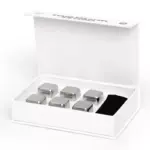 Acest pachet de sase contine o 6 cuburi de gheata din otel inoxidabil IGGI, care masoara 26 x 26 x 26 mm pentru a se potrivi perfect in paharul tau.
