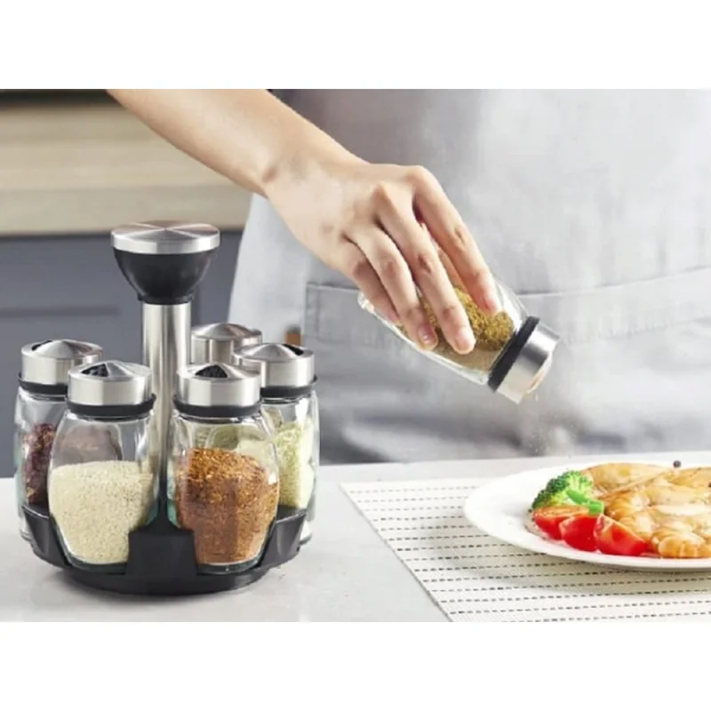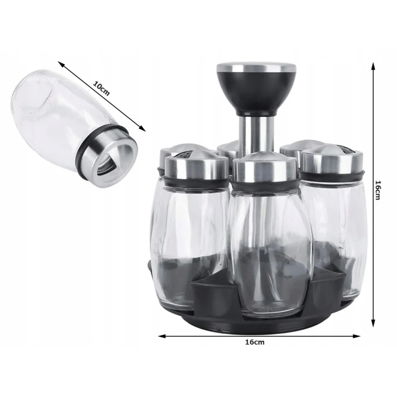 Organizator Condimente cu Recipiente Rotative – Set 6 Bucăți