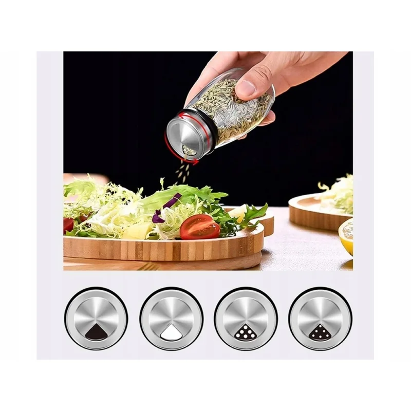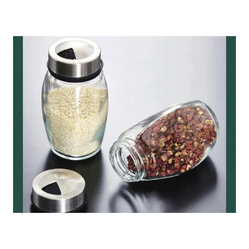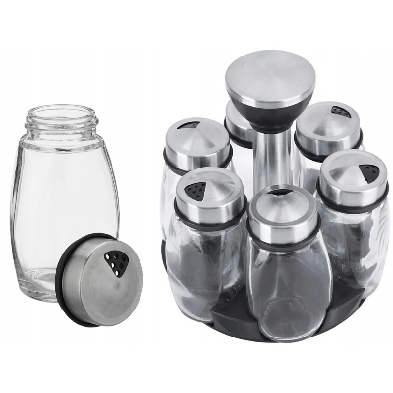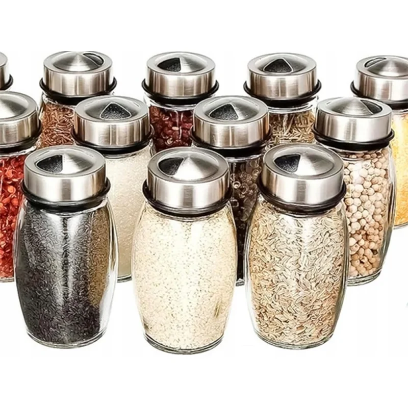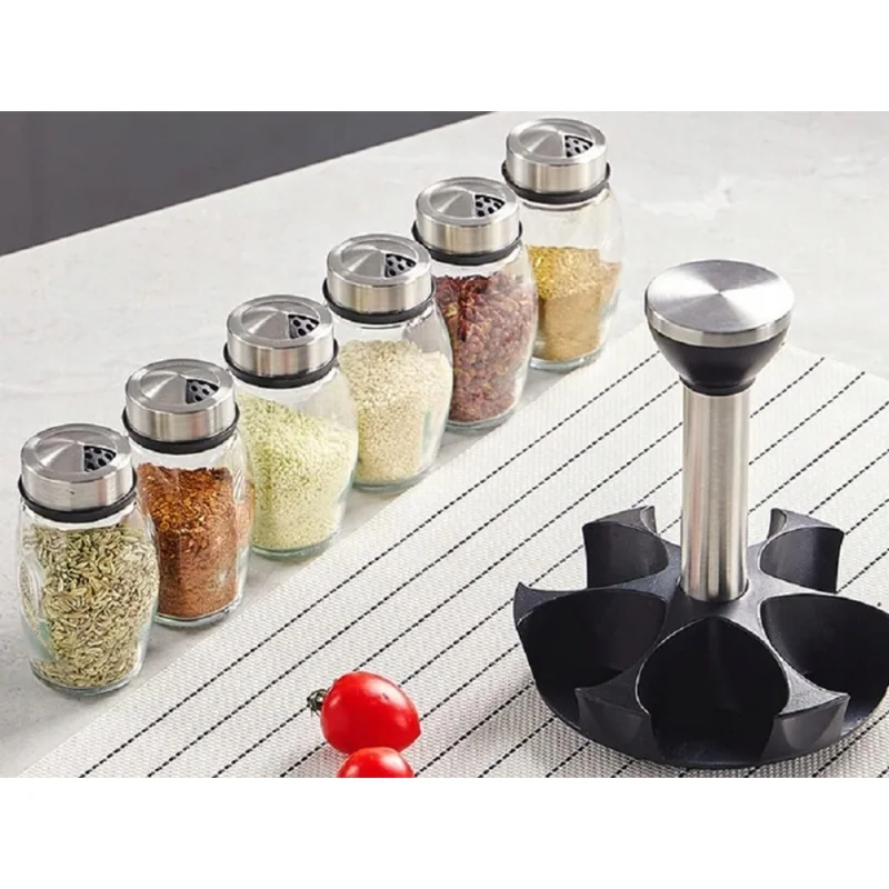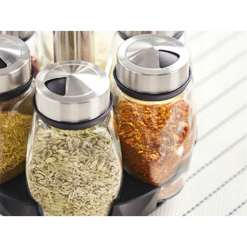 6 recipiente din sticlă – păstrează condimentele proaspete și aromate pentru mai mult timp.