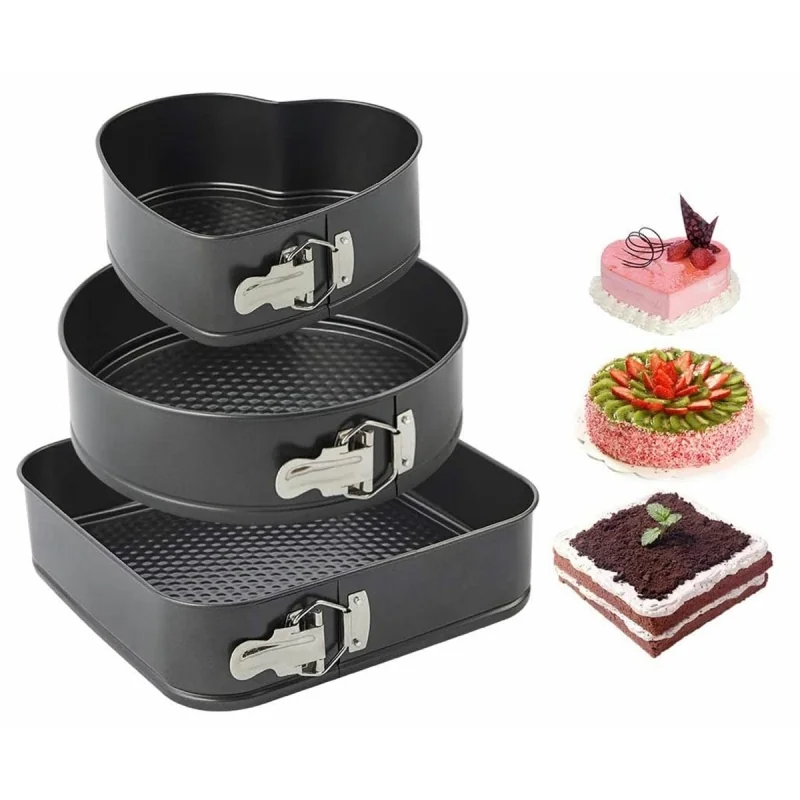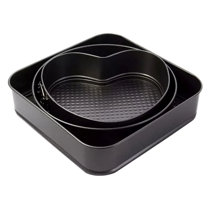 Set de 3 forme pentru copt, baza detasabila, inima, forma rotunda si patrata, Gonga® Negru