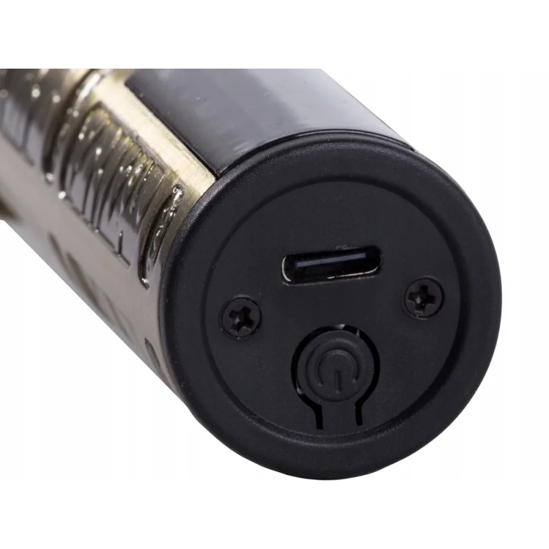 Dispozitivul funcționează pe baterie reîncărcabilă, oferind libertate de utilizare fără fir. Se încarcă prin cablu USB, inclus în set, iar afișajul LED indică nivelul bateriei.