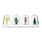 4 recipiente de condimente cu patru copacei, specifici anotimpurilor..