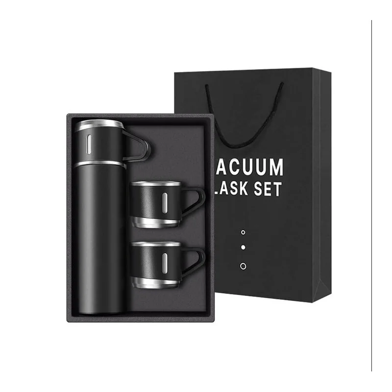 Set termos cu 3 căni din oțel inoxidabil, 0.5L, menținere a băuturilor calde 6 ore și reci 12 ore, Gonga® Negru