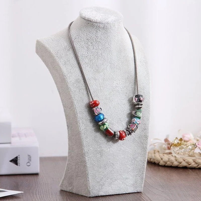 Acest suport tip bust este perfect pentru expunerea colierelor, lanțurilor și pandantivelor într-un mod elegant și ordonat. Cu o înălțime de 25 cm, este ideal pentru a pune în valoare bijuteriile într-un mod vizibil și accesibil. Designul său simplu și rafinat oferă un cadru perfect pentru orice tip de accesoriu, iar forma bustului ajută la prezentarea colierelor într-un mod natural și estetic.